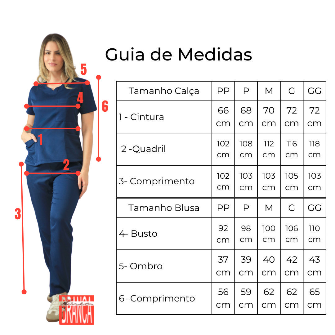 Blusa: Gola em V, manga curta.